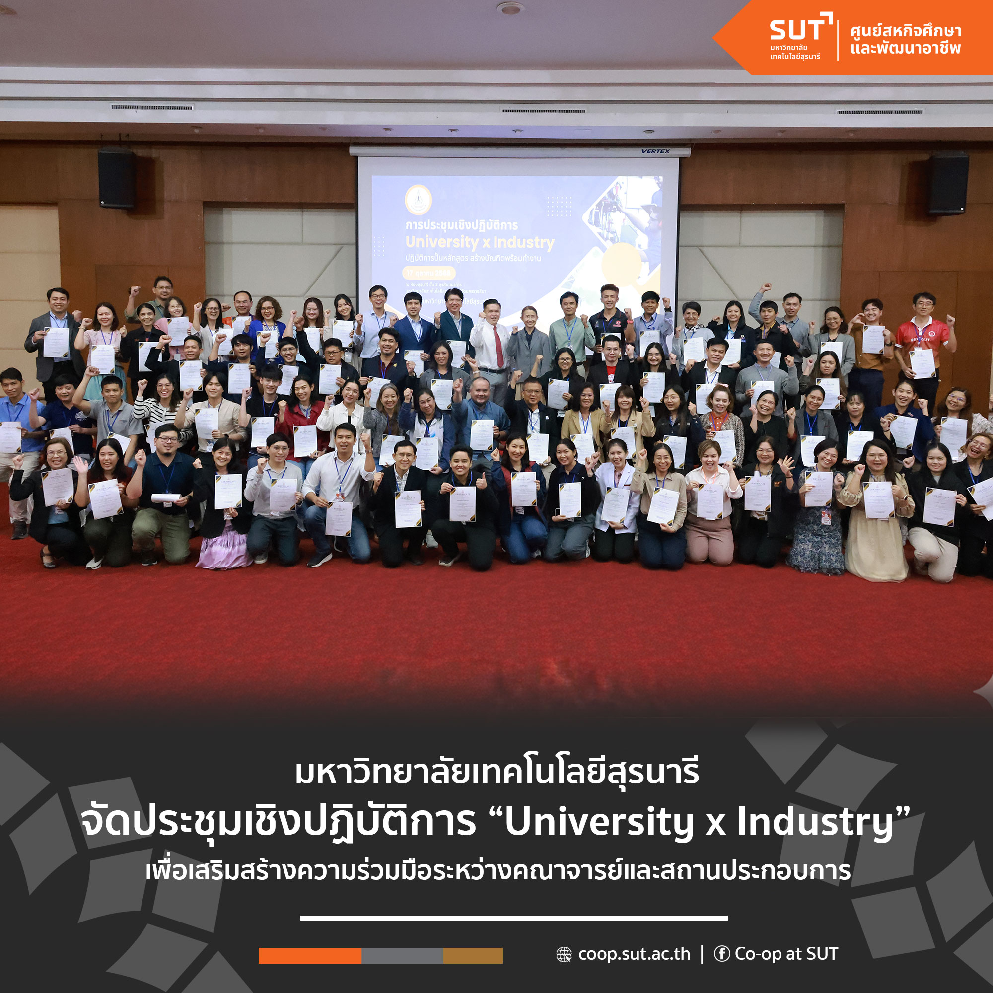 #มหาวิทยาลัยเทคโนโลยีสุรนารี (มทส.) จัดประชุมเชิงปฏิบัติการ “University x Industry: ปฏิบัติการปั้นหลักสูตร สร้างบัณฑิตพร้อมทำงาน” #เพื่อเสริมสร้างความร่วมมือระหว่างคณาจารย์และสถานประกอบการในการออกแบบหลักสูตรที่ตอบโจทย์ความต้องการของภาคอุตสาหกรรม เมื่อวันศุกร์ที่ 17 ตุลาคม 2568 ณ ห้องสุรนารี ชั้น 2 สุรสัมมนาคาร #มทส โดยมีผู้เข้าร่วมทั้งสิ้น 90 คน