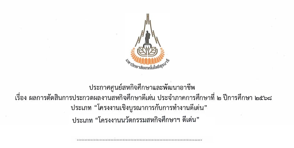 ขอเชิญส่งผลงานเข้าร่วมประกวด ผลงานสหกิจศึกษาดีเด่นระดับมหาวิทยาลัย ประจำภาคการศึกษาที่ 1/2568